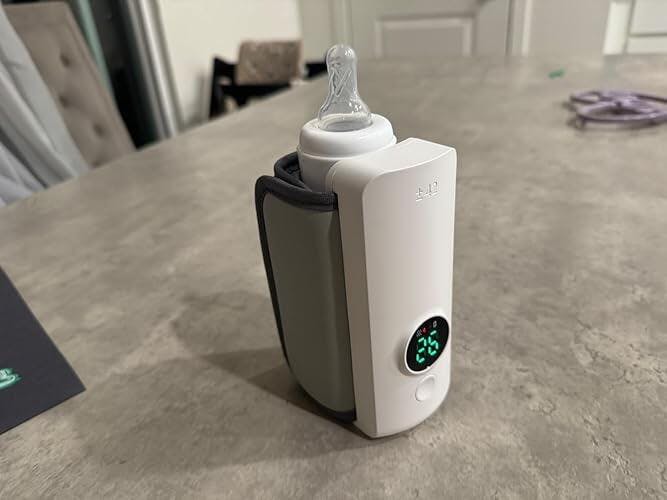 Solidna konstrukcja i regulowana opaska termiczna z mocnym rzepem gwarantują stabilność butelki w każdej sytuacji – w domu, na spacerze czy w podróży. Urządzenie jest lekkie, poręczne i estetycznie zaprojektowane, aby codzienne karmienie było jeszcze prostsze.