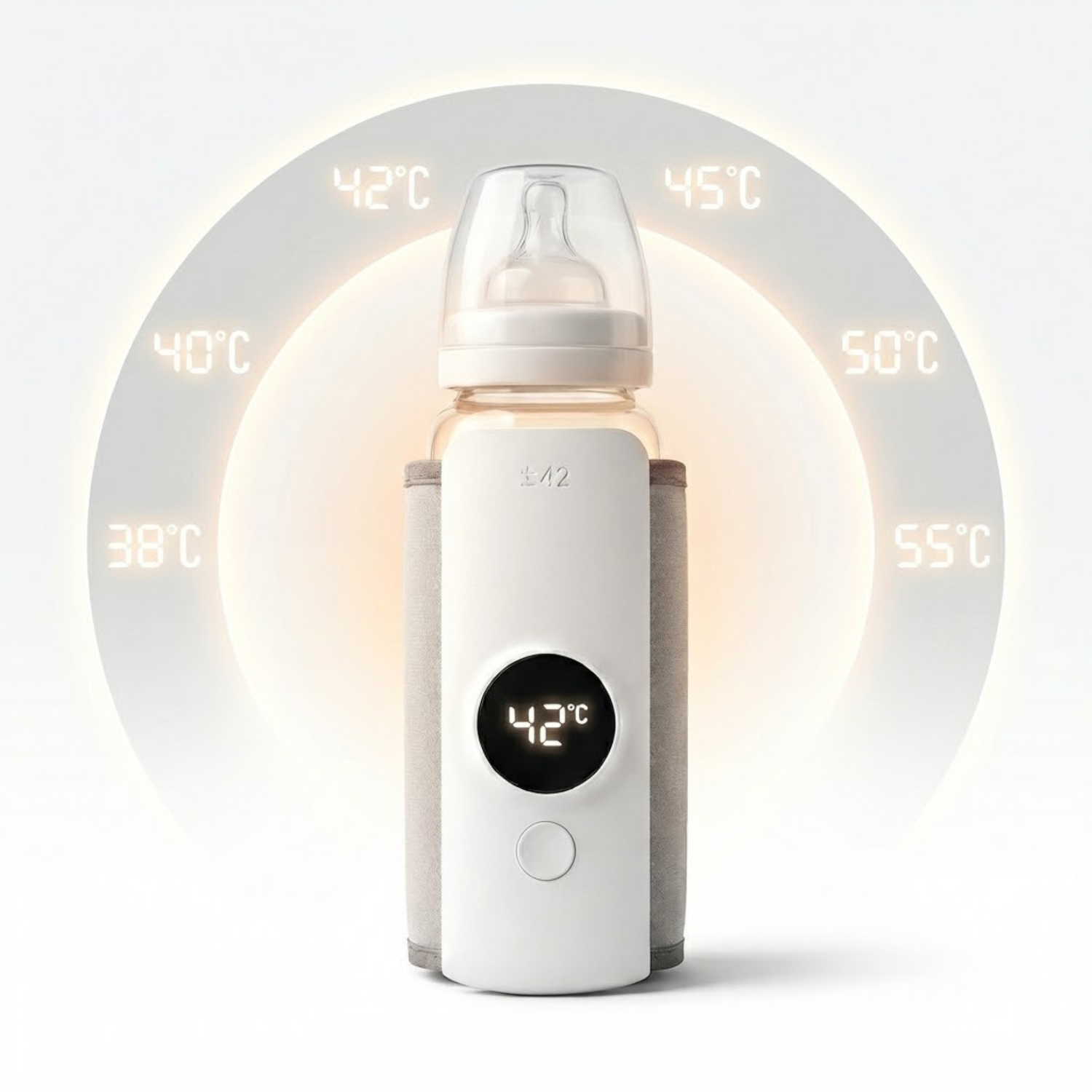 Mleczuś oferuje 6 precyzyjnie dobranych poziomów temperatury – od łagodnych 38°C po ciepłe 55°C. Dzięki intuicyjnemu wyświetlaczowi błyskawicznie wybierzesz idealną opcję dla swojego maluszka.