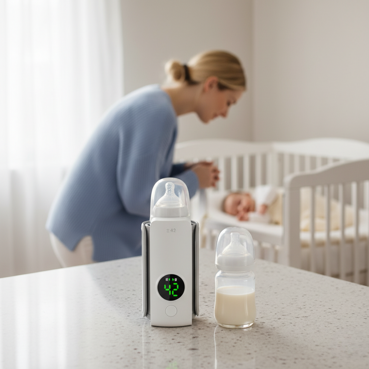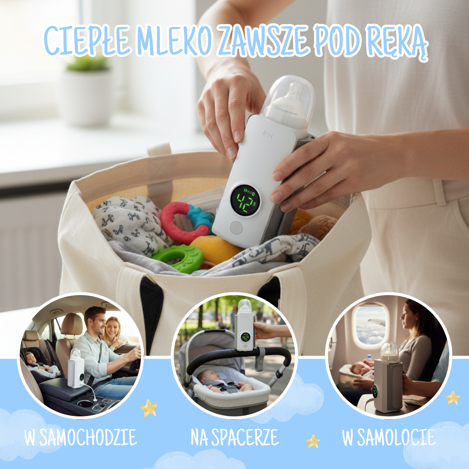 Stworzony z myślą o rodzicach, którzy chcą dać swojemu maluchowi ciepłe mleko zawsze i wszędzie – bez stresu i długiego czekania. Dzięki niemu w kilka chwil przygotujesz butelkę w idealnej temperaturze. Nie potrzebujesz już termosów, kabli ani szukania kuchni w podróży.