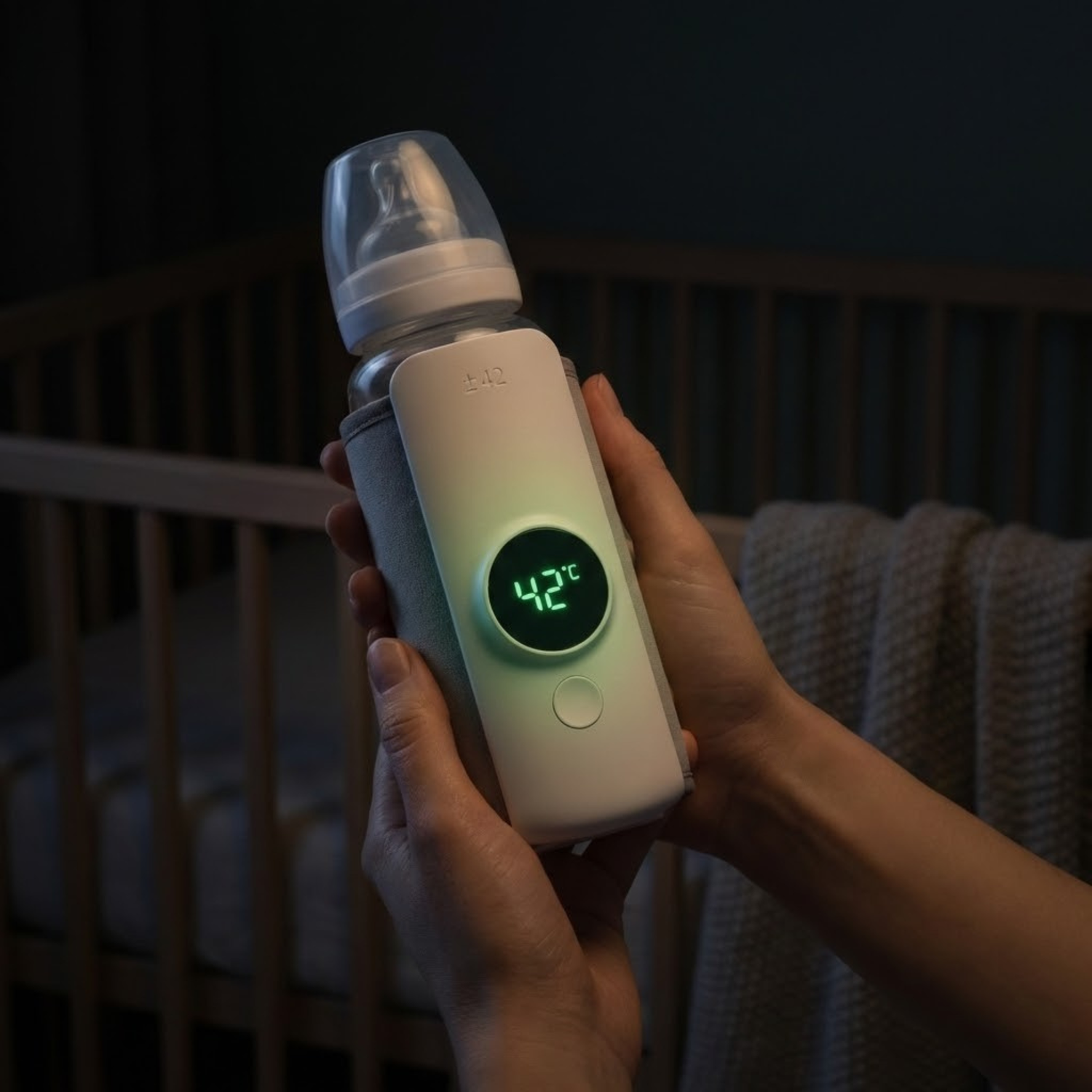 Gdy mleko osiągnie odpowiednią temperaturę, wystarczy wyjąć butelkę i nakarmić dziecko – szybko, wygodnie i bez stresu.